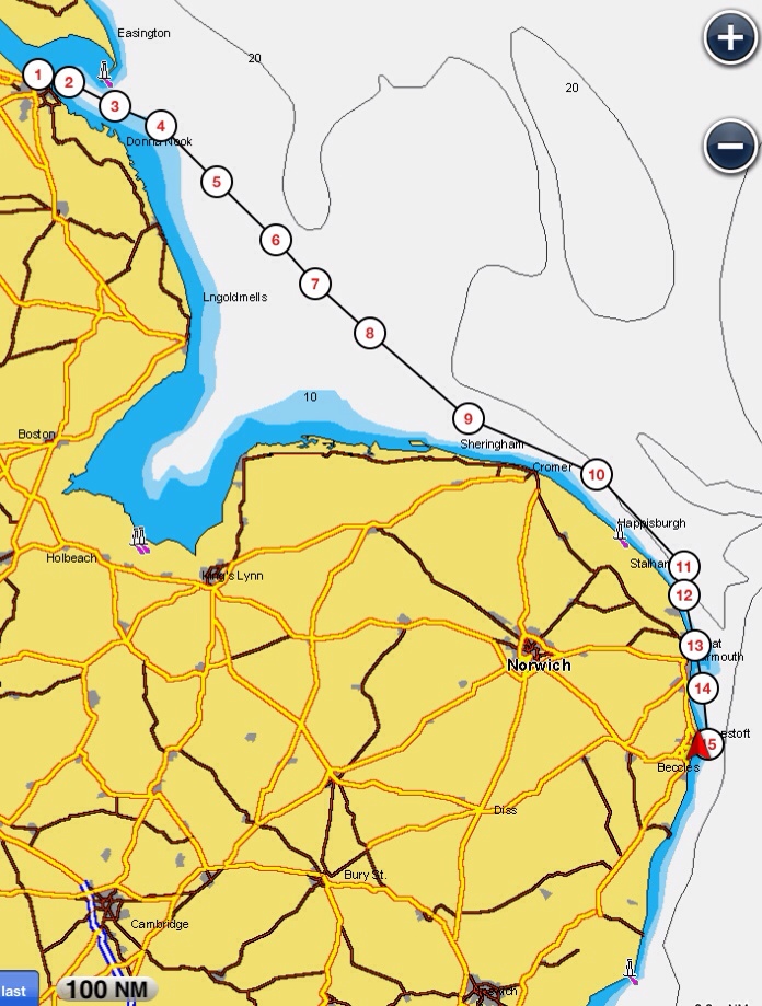 • Grimsby to Lowestoft: 106 nm / 18 hrs
